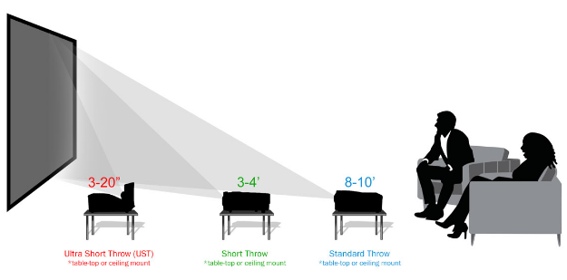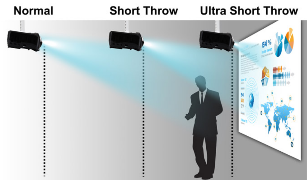 5. מקרני עדשה טווח קצר (S.T (Short Throw - מקרן לנוחות תפעולית - להקרנות לקהל או במיקום שאין אפשרות להתקנת מקרן